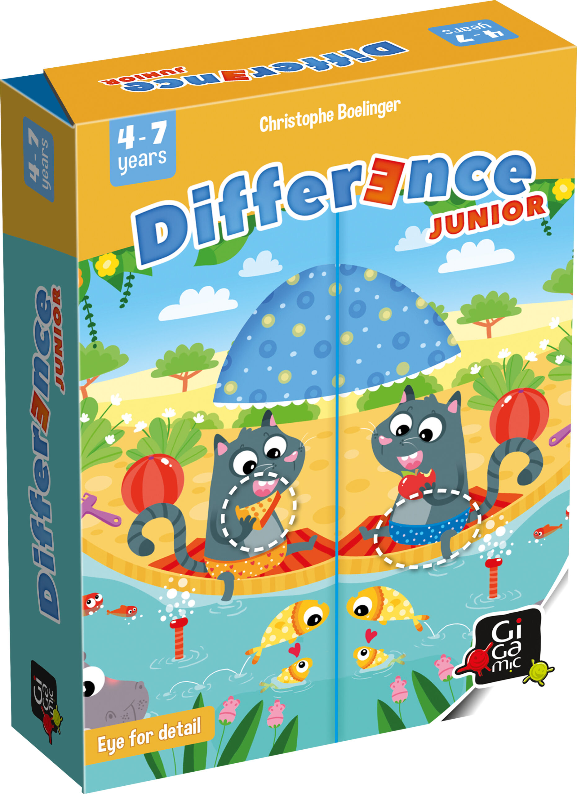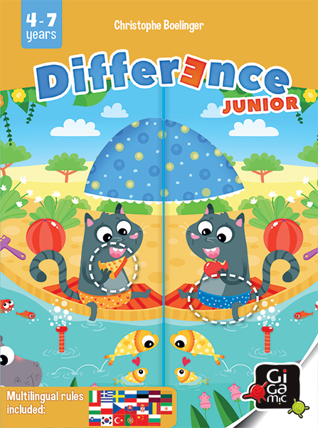 The famous Difference comes in a special version for the youngest. 4 talented illustrators lead you in a fun and colorful universe! Who will first find the 2 differences between his card and the one in the center of the table?