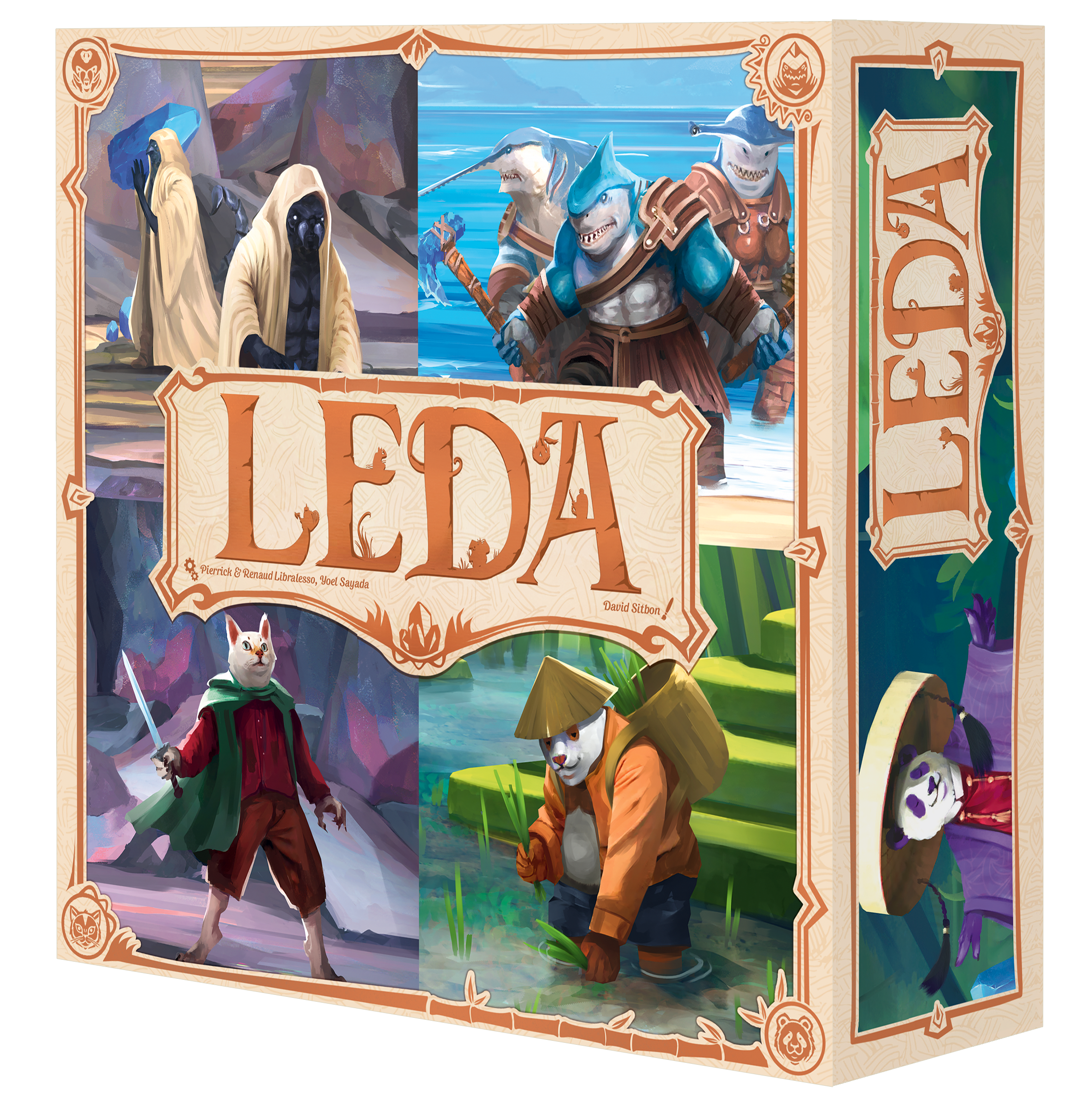 Dans le royaume de Leda, les espèces se sont éveillées. Chats, Pandas, Requins, Scorpions, et bien d’autres… Chaque clan animal a développé sa propre civilisation, son langage, ses ambitions. À travers une étrange grille d’énergie qui pulse au rythme du monde, ils bâtissent, évoluent, s’affrontent — et cherchent à imposer leur vision du futur. LEDA est un jeu de cartes asymétrique pour deux joueurs, où chacun incarne un clan animal avec ses propres règles, objectifs et façon de jouer. Chaque joueur possède une grille de 4×4 cartes basiques, qu’il va modifier au fil de la partie en les améliorant et en y jouant des cartes de clan. À chaque tour, la tuile Action détermine une zone de la grille à activer (ligne,colonne, carré…), permettant de déclencher les effets des cartes situées dans cette zone. Les joueurs doivent optimiser leurs activations, gérer leur nourriture (la ressource principale) et améliorer leur moteur de jeu pour remplir une condition de victoire propre à leur clan, en parallèle d’une course à la victoire militaire !