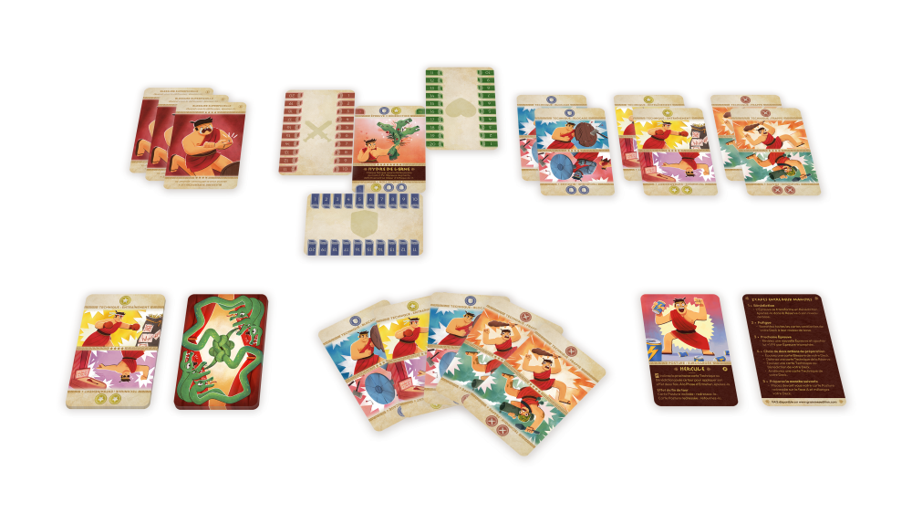 Step into the mythological and humorous world of Micro Hero: Hercules, a minimalist solo deck-building card game inspired by the 12 Labors of Hercules. As the legendary hero, you’ll embark on an epic adventure, revisiting his mythical feats with a fresh, humorous twist. This compact and strategic game invites you to prove your strength and resilience as you face increasingly challenging obstacles. Each game consists of twelve rounds, each representing one of Hercules’ Labors. Using your deck of technique cards, you’ll gather experience points (EXP) to improve your abilities, upgrade your cards, and overcome mythological foes. Master the balance between offensive and defensive stances, strategically chaining your card plays to unleash powerful combinations while minimizing the damage you take. Your goal is to complete all 12 Labors of Hercules without succumbing to the burden of wound cards. To triumph in each round, you must reduce the Labor’s health to zero by dealing enough damage while defending yourself from its attacks. Defeated Labors transform into blessing cards, which can be added to your arsenal for future rounds. Victory is achieved by completing all 12 Labors consecutively, while the game is lost if your deck becomes overwhelmed by wounds. With its evolving card system and streamlined mechanics, Micro Hero: Hercules offers high replayability and minimal randomness, ensuring every decision is impactful. Each Labor takes about twenty minutes to complete, and the game can be paused between rounds, making it perfect for long campaigns or quick sessions.