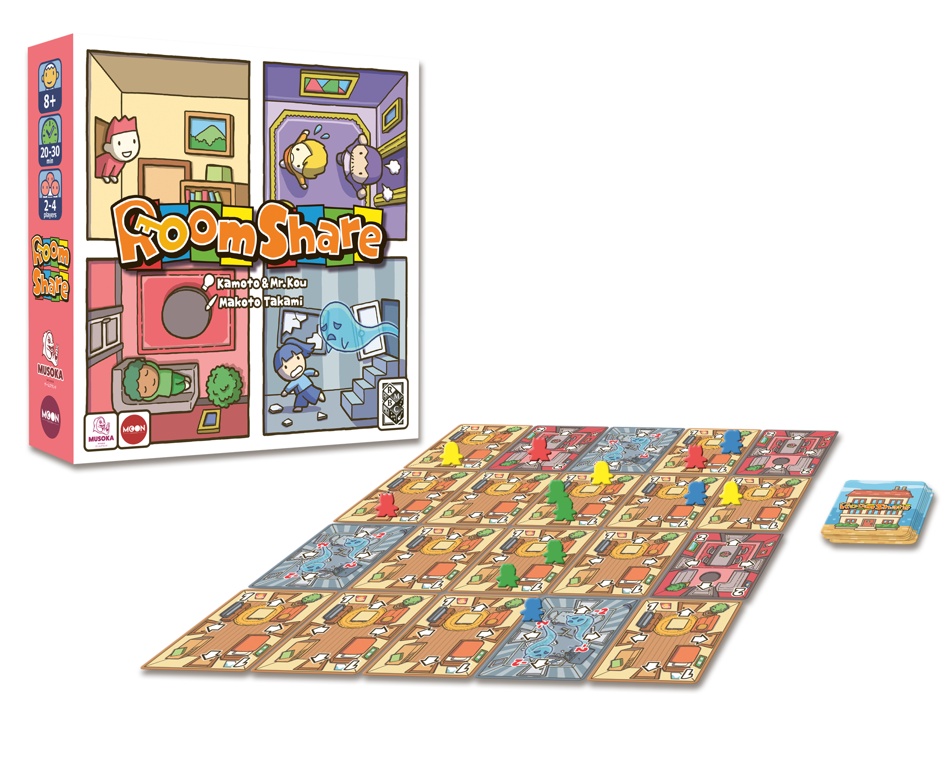 • 36 Meeples • 57 cards • Rulebook