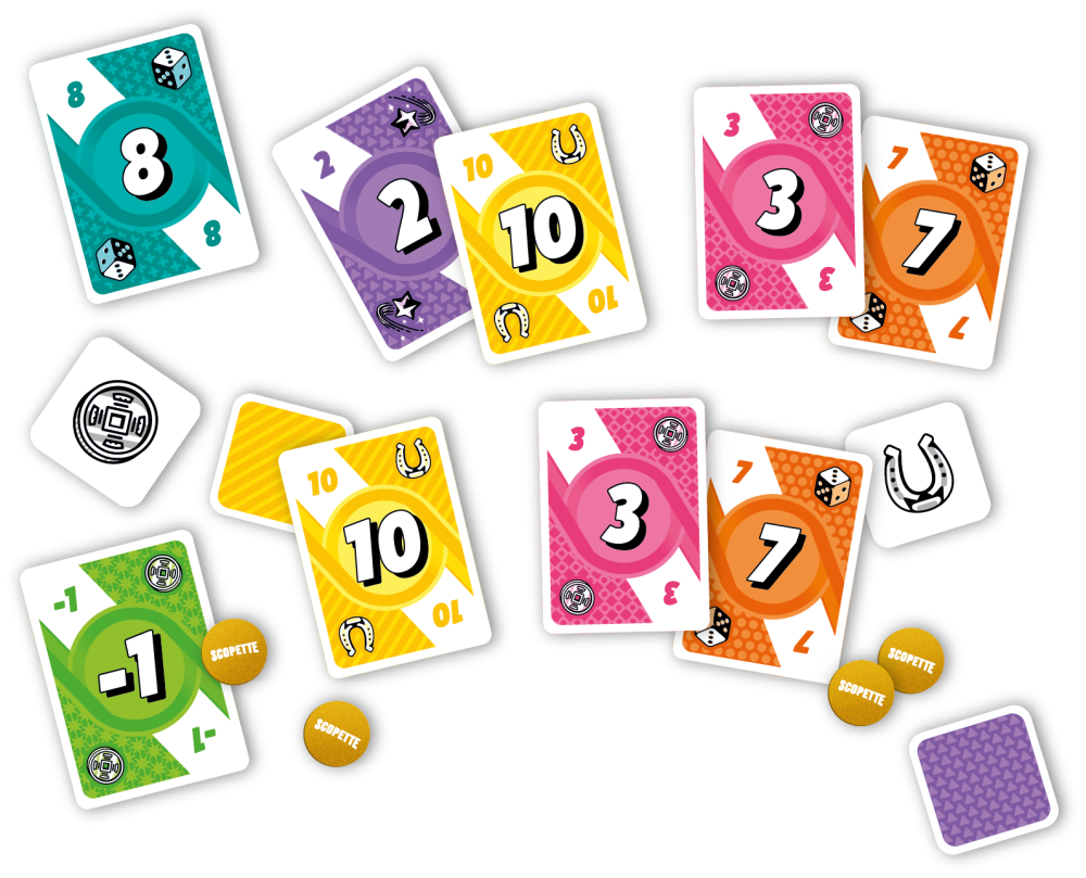 • 78 color cards • 6 symbol cards • 24 sweep tokens • 1 rulebook