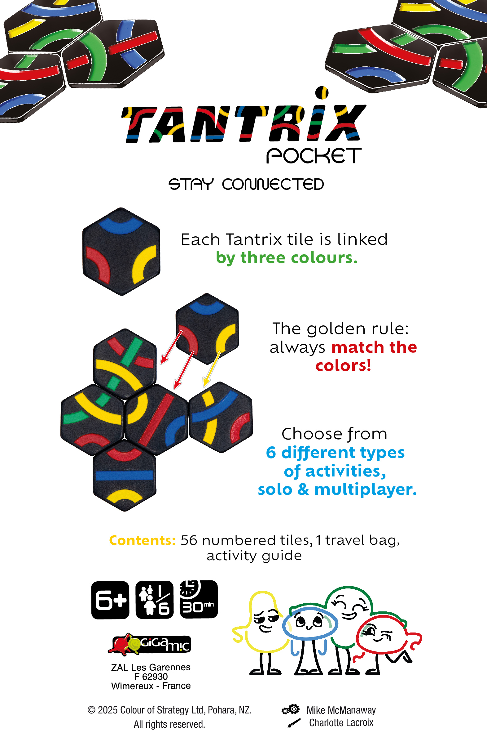 • 56 numbered tiles • 1 travel bag • Activity guide